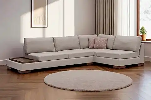 Tulip Köşe Koltuk; silinebilir ithal örme kumaşı sayesinde kolayca temizlik imkanı sunar. Nötr renginin ahşap sehpa modülü ile olan birleşimi sofistike bir tasarım yaratırken tam köşe oluşu ile maksimum düzeyde bir oturum alanı sağlar.